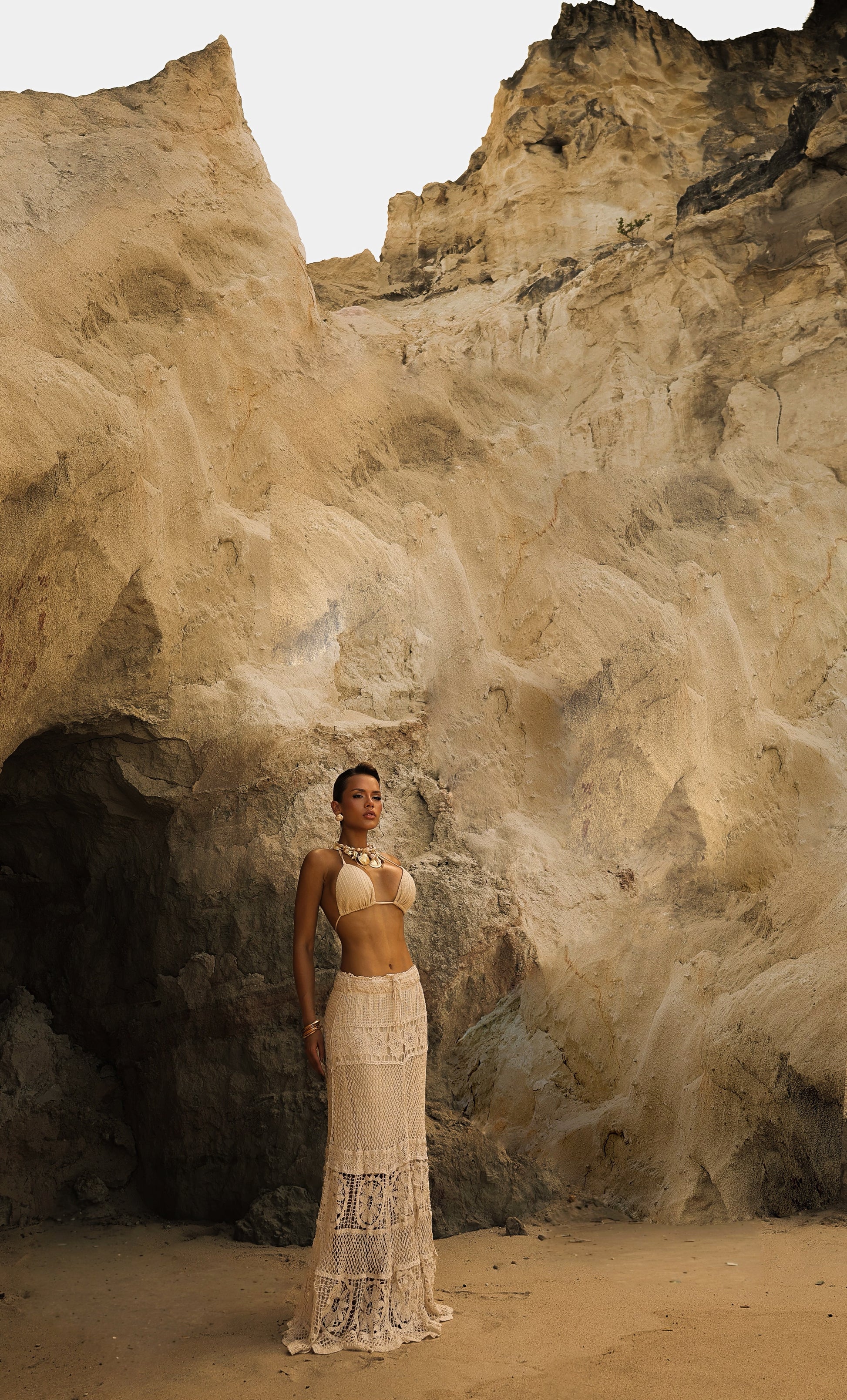 A Saia LUNA traduz a estética natural e sofisticada da Fio e Areia.