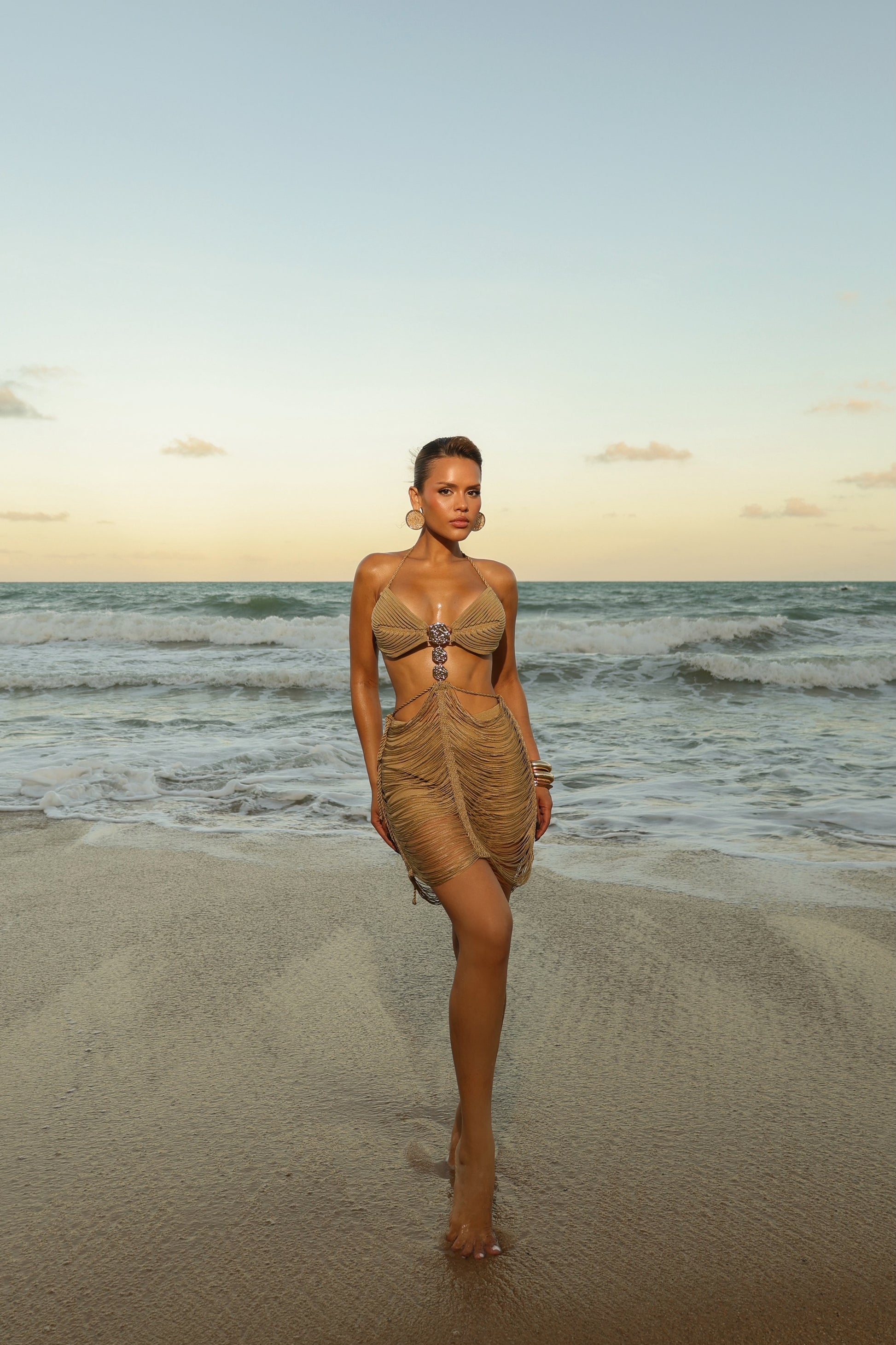 O Vestido Ágata é pura presença. Um dos modelos mais desejados da coleção, ele combina sensualidade, movimento e brilho na medida perfeita para quem quer ser impossível de ignorar.