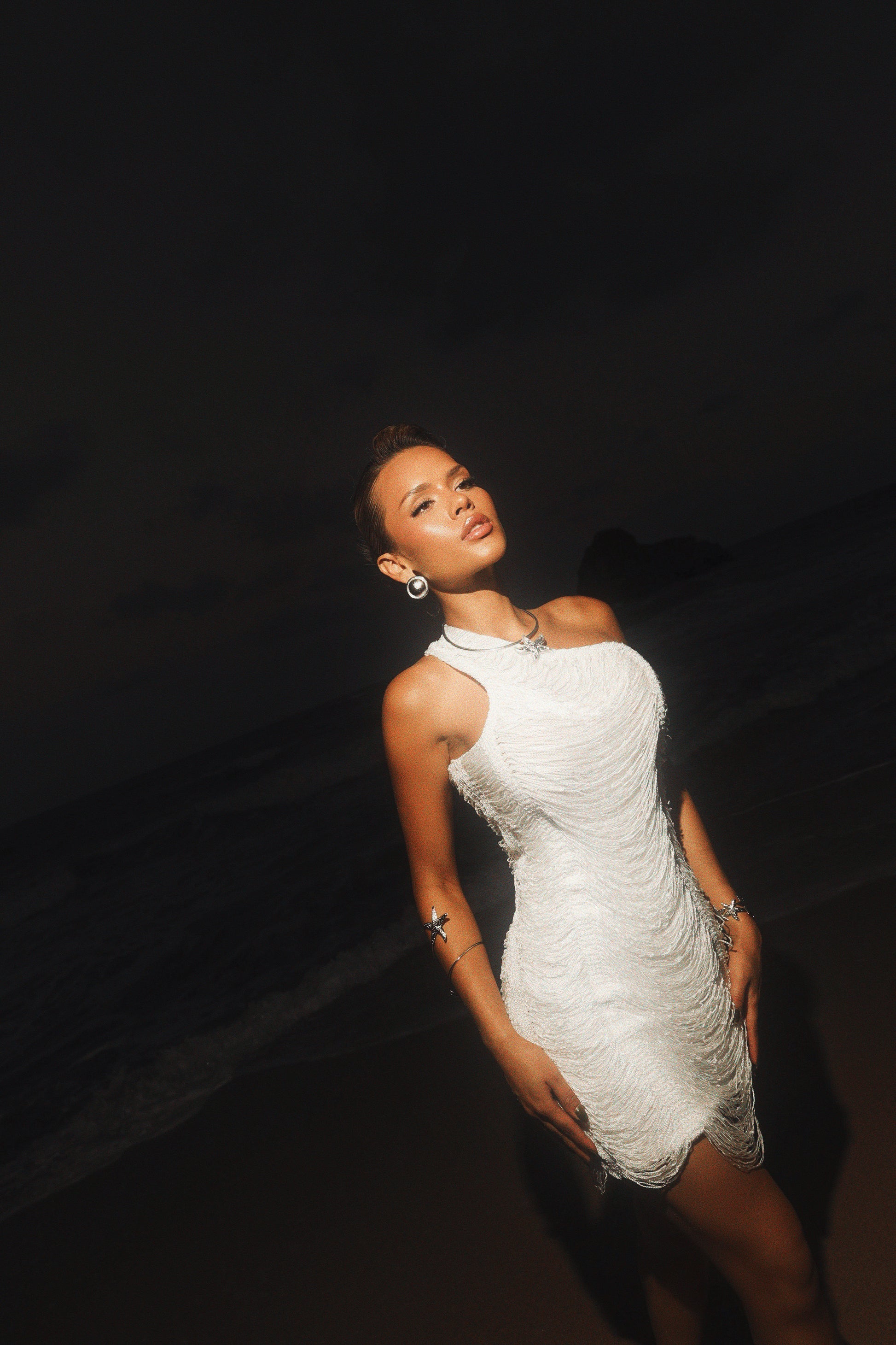 Com textura marcante e caimento que valoriza as curvas, é uma peça leve, sofisticada e perfeita para ocasiões especiais à beira-mar ou à noite.
